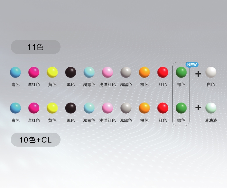 • 11色超廣色域,新增加綠色墨水,色域再擴大19%,擁有媲美藝術微噴的列印品質,助您輕鬆拿下訂單