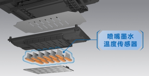 噴頭噴嘴附近加裝了新型的溫度自動感測器,透過精確測量墨水的溫度,可以維持噴嘴表面附近的溫度恆定,減少列印開始和結束之間的色差,即使在較長的列印作業中也可維持色彩穩定性。